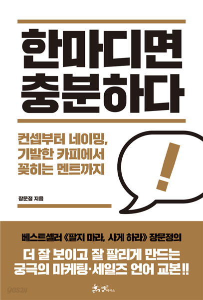 이처럼 말의 내용이 왜 중요한지, 우리에게 목 놓아 소리치는 한 분이 있습니다. 지난번 소개했었던 '팔지 마라 사게 하라'의 저자인 장문정 님입니다. 특히 영업사원들이 어떤 언어를 써야 하는지, 그리고 실전에서의 유용한 팁을 알려주기 위해 또 한 권의 책을 펴냈습니다. 바로 오늘의 추천 도서인 '한마디면 충분하다'입니다(밀리의 서재 추천).